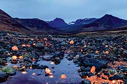 稀土是元素週期表中十七種金屬元素的總稱,地殼中的儲量並不算少,但因往往多種元素混合在一起、難以單獨分離提煉,且開採過程耗能又易造成汙染。稀土是手機、電動車及導彈等高科技產業不可或缺的材料,在這波資源熱潮中,格陵蘭的克瓦內菲爾德礦區尤為引人注目,該地以富含稀土聞名,其特有的方鈉石在紫外光下更散發鮮豔螢光。